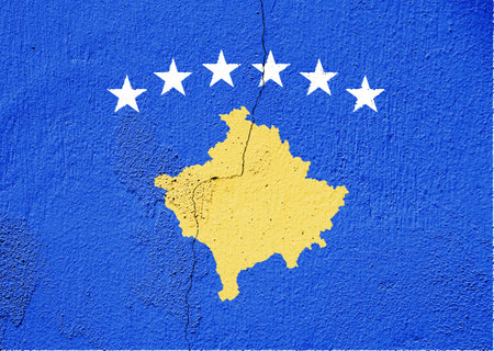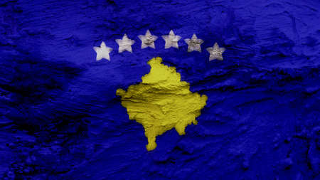 Closeup of Ruffled Kosovo Flag, Kosovo Flag Blowing in Wind