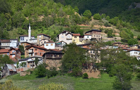 Aerial view of Village of Dolen with Authentic nineteenth century houses, Blagoevgrad Region, Bulgaria