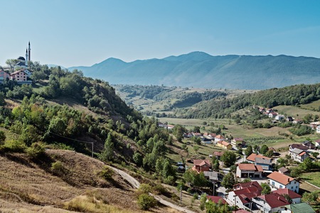 Mountain landscape with a village in the middle of the forest. Serbia, Zlatibor