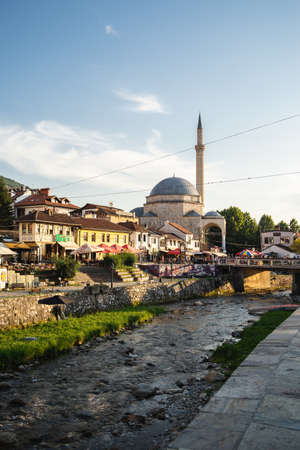Panorama of the city center of Prizren, Kosovo, with minaret ofthe Sinan Pasha Mosque at sunset.