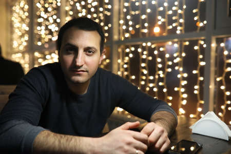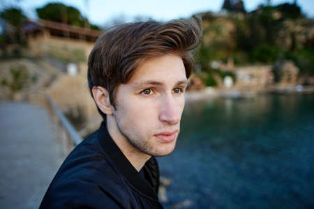 Portrait of handsome stylish caucasian young man close-up.