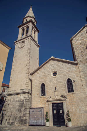The ancient city on the coastline of Adriatic sea. Budva. Montenegro. Budva riviera. Ancient fortress the in Venetian style.