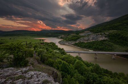 Magnificent spring sunset. Panoramic view of the rock phenomenon Wonderful rocks (Bulgaria)
