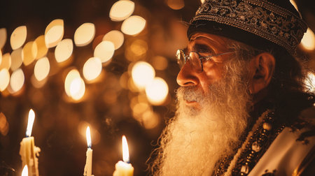 Portrait of an old man in the church during the celebration of the Epiphany.