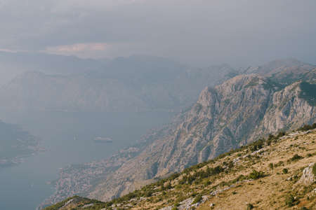 Kotor Bay in the fog. Mount Lovcen, Montenegro