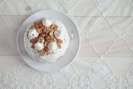 Easter cake with white icing on a plate