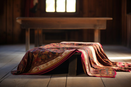 traditional monastic robe folded neatly on a wood table, created with generative ai