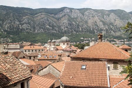 Kotor town . Montenegro. Beautiful panorama of orange roofs of medieval town.