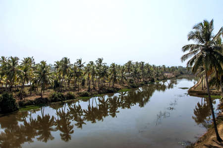 Reflection of palm trees in the river, Kerala, South India