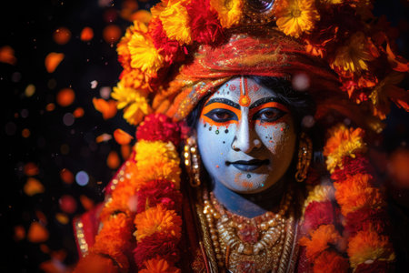 People at festival in traditional Hindu festival of Thaipusam, happy men and women holiday AI Generative