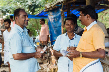 Kochi, India - November 28, 2015: Indian people working on the street in Mattancherry district, Kochi Cochin, Kerala, India