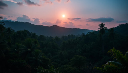 Soft twilight glow over jungle valley