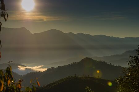 Light of sunset with mountains background in thailand