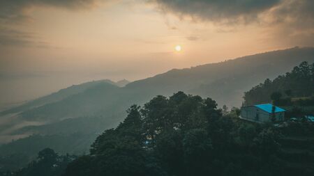 Sunset above mountain in valley Himalayas mountains