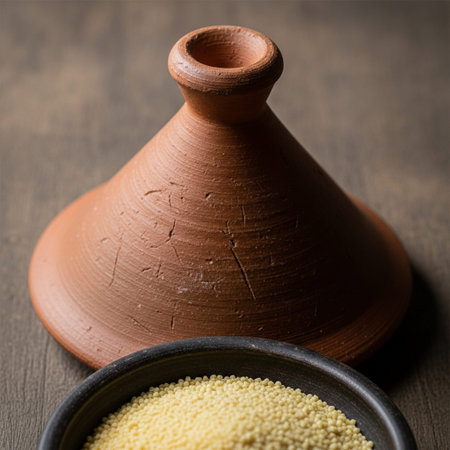 the couscous in faience basin on kitchen table