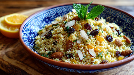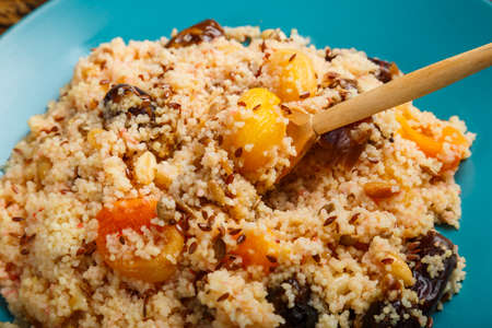 Arabic couscous with raisins, almonds and dried apricots