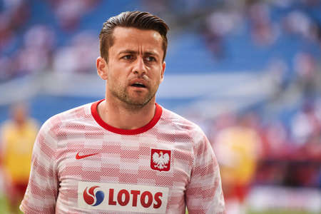 POZNAN, POLAND - JUNE 8, 2021: Friendly football match Poland - Iceland 2: 2. Warm up goalkeeper Lukasz Fabianski.