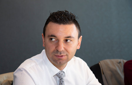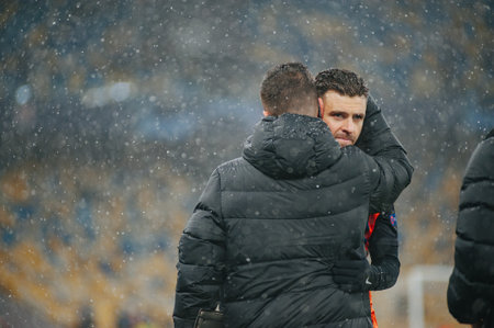 ODESSA, UKRAINE -2 March 2019: Legendary famous football coach Paulo Alexandre Rodrigues Fonseca during match Shakhtar (Donetsk) with Chornomorets. Press conference, comments Head coach Paulo Fonseca