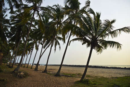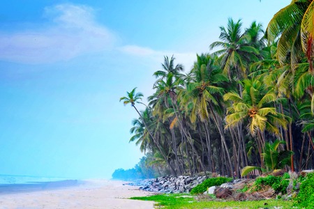 Palm and Ocean coast with big waves in India