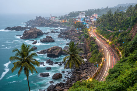 Beautiful night view of the coastline at Varkala