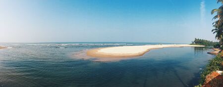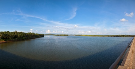 Panorama of Beautiful view of lake and trees around water in udupi Karnataka India