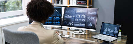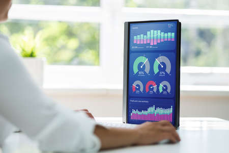 KPI Business Analytics Data Dashboard. Analyst Using Computer