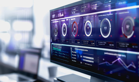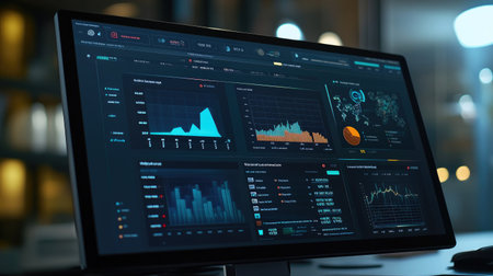 A close-up view of a digital dashboard showcasing various data visualizations. This image features colorful graphs and charts, ideal for illustrating analytics and performance insights in a modern workspace.