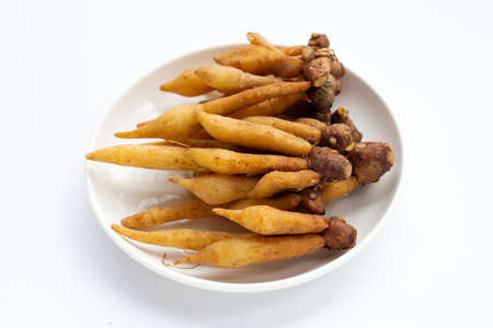 Fresh fingerroot on a white background, it�s considered both a medicinal and a culinary herb.
