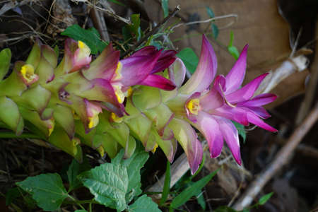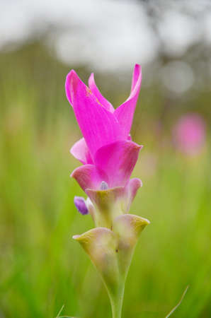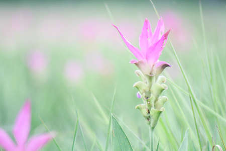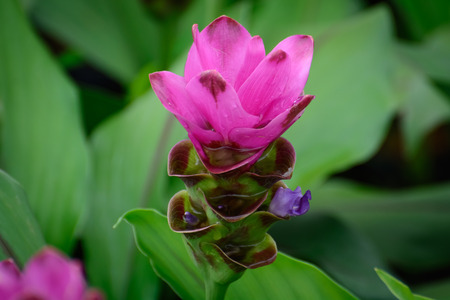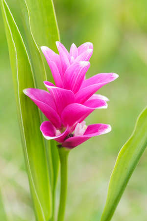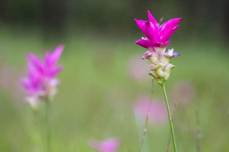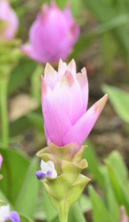 Pink Siam tulips (Curcuma sessilis), Krachiew in Thai, beautiful flower blooming in the garden park, Chaiya phoom province, Thailand.