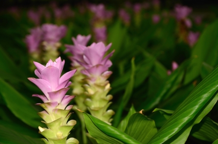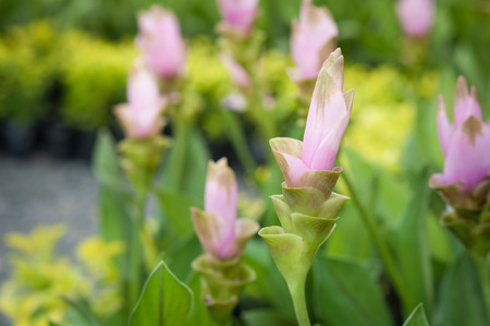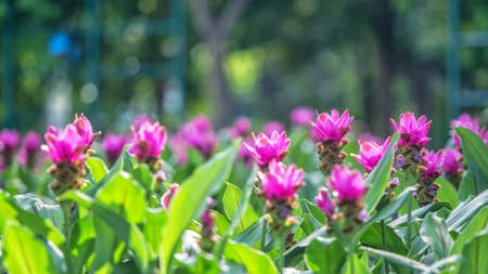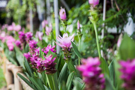 Siam Tulip flower or Curcuma sessilis pink flower in the garden. Flowers are planted in groups to add beauty and freshness.