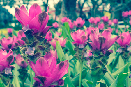 Curcuma alismatifolia or Siam tulip or Summer tulip in the garden nature Thailand vintage