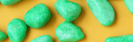 green pebbles on yellow background