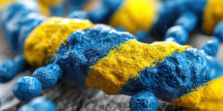 This striking close-up image showcases colorful bacteria with vibrant blue and yellow textures set against a dark background, perfect for scientific themes.