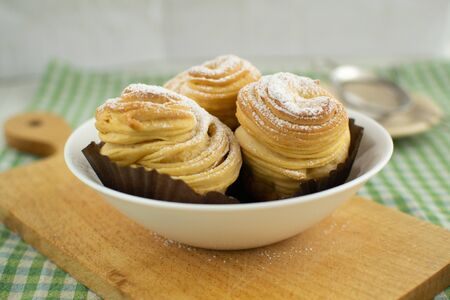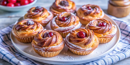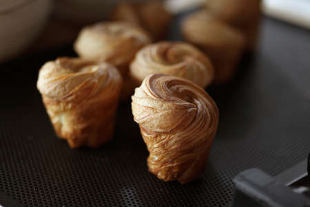 Cruffins is a hybrid of croissant and muffin. Tasty and fragrant pastries, with an unusual appearance.