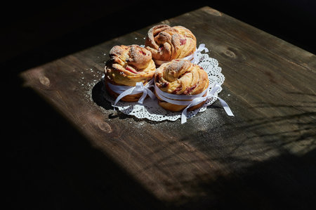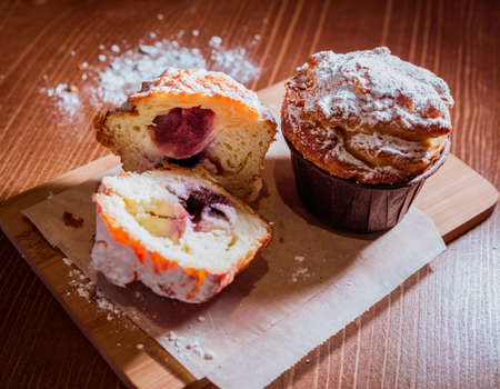 fresh bakery american cruffins with jam Sprinkled with powdered sugar