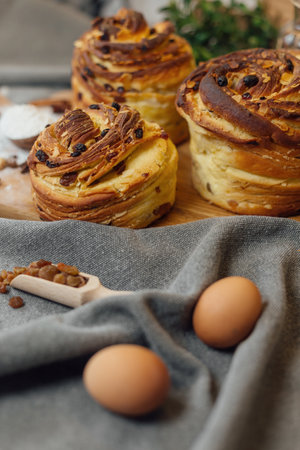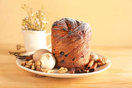 Easter traditional bread cake - Kraffin, panettone decorated on kitchen table