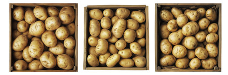 Fresh potatoes in wooden crate, isolated on white transparent background,, concept of harvest.