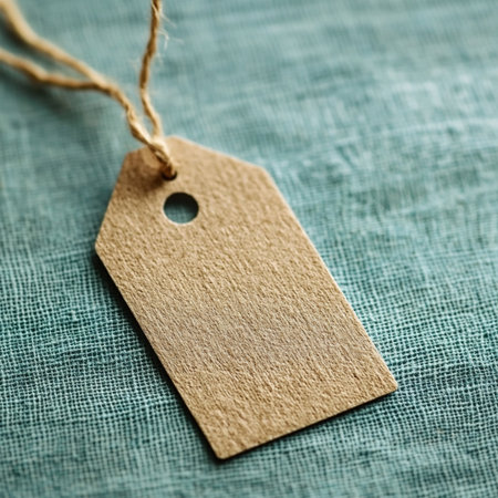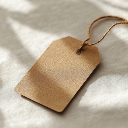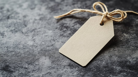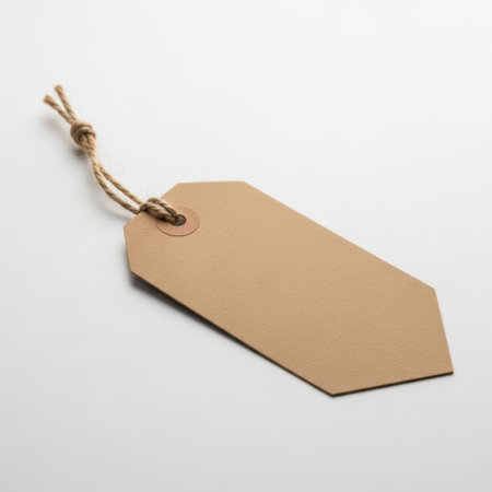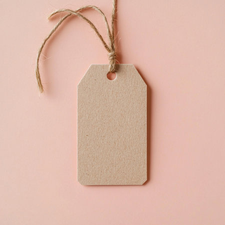 A close-up of a blank price tag attached to a product, with a minimalistic background and plenty of copy space for text.