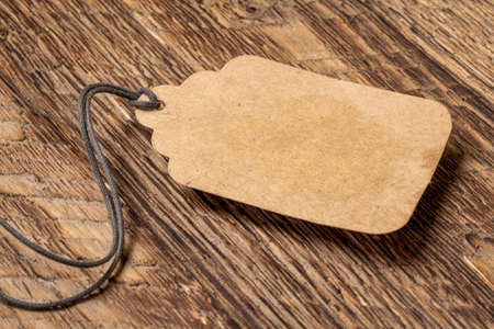 blank brown price tag on wooden background