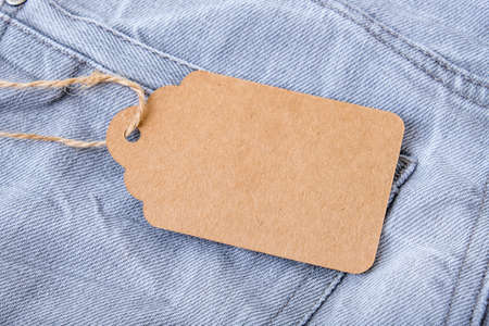 Craft blank label on gray shabby jeans background, sale and discount concept
