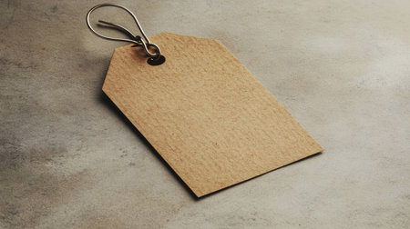 A blank craft paper tag rests on a rustic surface, perfect for labeling or crafting. Ideal for DIY projects and creative uses in stationery.