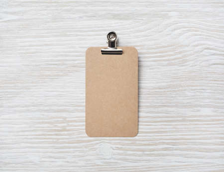 The price tag made of cardboard is empty without inscriptions on a light background.