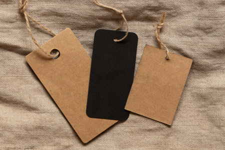 Clothing labels, made of eco-friendly organic material, empty as a mockup.
