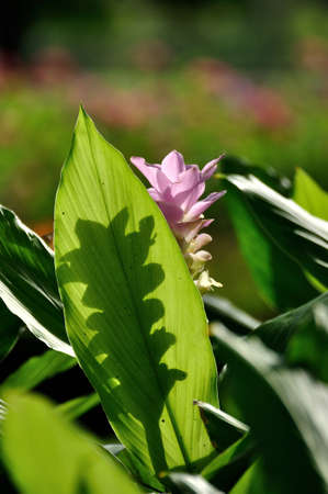 Pink siam tulip avoids sunlight with stay behind the leaf