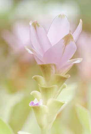 Soft blur pink siam tulip flower ( Krachai flower ) on green background in the garden.