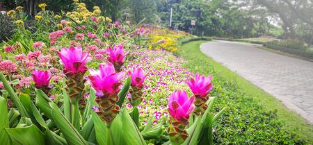 Krachiew flowers and another name is Curcuma sessilis in public park and many type of flower for background.