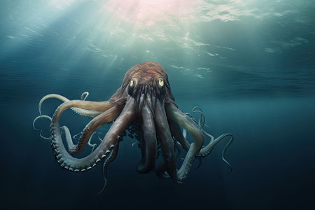 Majestic octopus in deep ocean with intricate tentacles and ethereal light