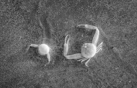 Crab walking on white sand beach walking into the sea, on the beach, at the sea, in the morning , the crab life lives on the sandy beach.