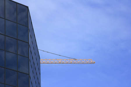 Reflection of a crane in glass wall