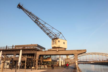 FRANKFURT, GERMANY - MAR 14: Crane at the old Osthafen port at Main river in Frankfurt. March 14, 2016 in Frankfurt Main, Germany